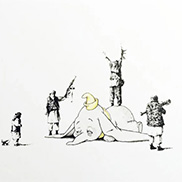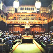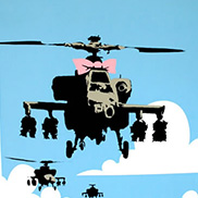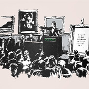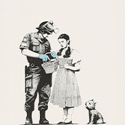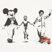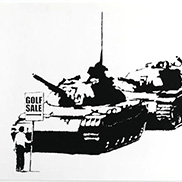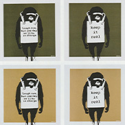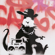 バンクシーのプリント作品は当初6,600円で売られていたが、それから2年も経たないうちにロンドンで初の展覧会「Turf War(ターフ・ウォー)」が開催されると、バンクシーのプリント作品の価格は高騰し、世界進出に必要な資金をバンクシーにもたらした。