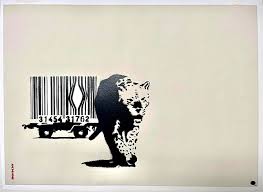 《Barcode》はバンクシーが最初期に描いていたイメージであり、最も古いものは1999年に出身地ブリストルの壁に描かれたステンシル画である。1頭のヒョウが、車輪のついたバーコードの檻を破って逃げ出したところを描いたこの作品は、闇市場における野生動物の監禁、虐待、売買に対するシンプルで痛烈な批判となっている。