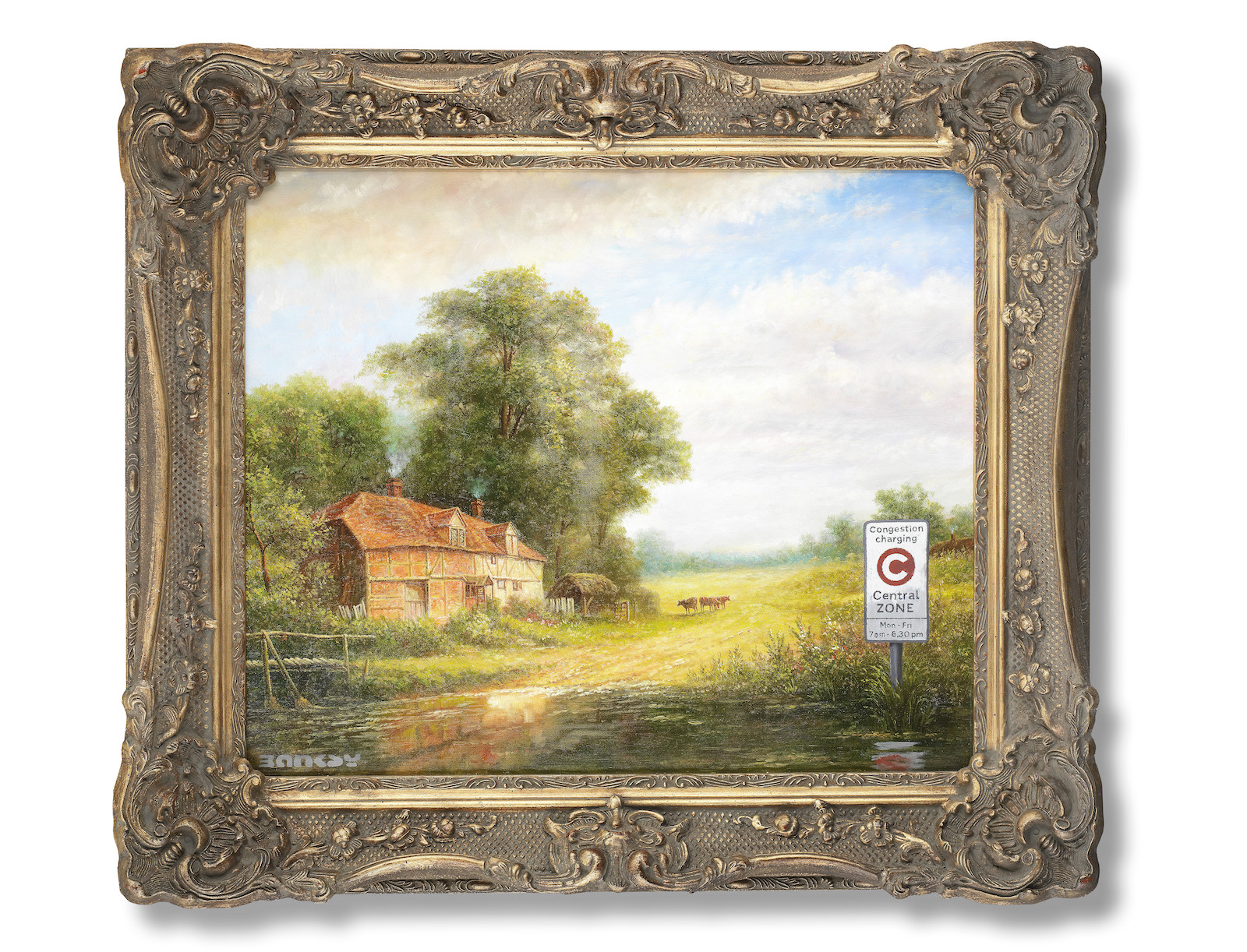のみの市で販売されている無名の画家が描いた田園風景に、ロンドン市内への車の乗り入れを料金の徴収によって制限して渋滞の解消をめざす「コンジェスチョン・チャージ」の対象となる区域を示す「C」の標識を描き加えた作品。既存の作品に描き足すことで意味を変えてしまうでトーナメント(転用)の手法を使ったシリーズの一つ。
